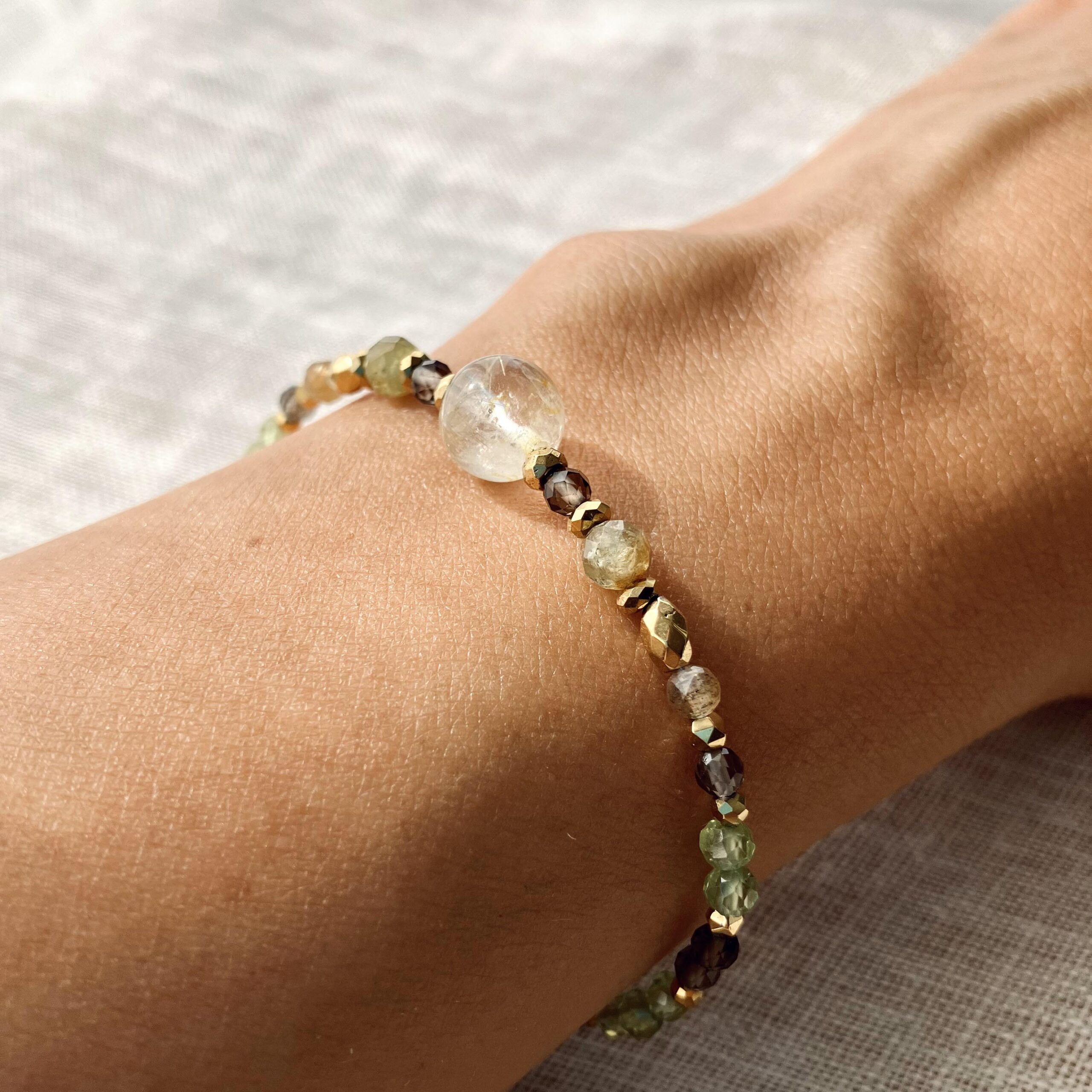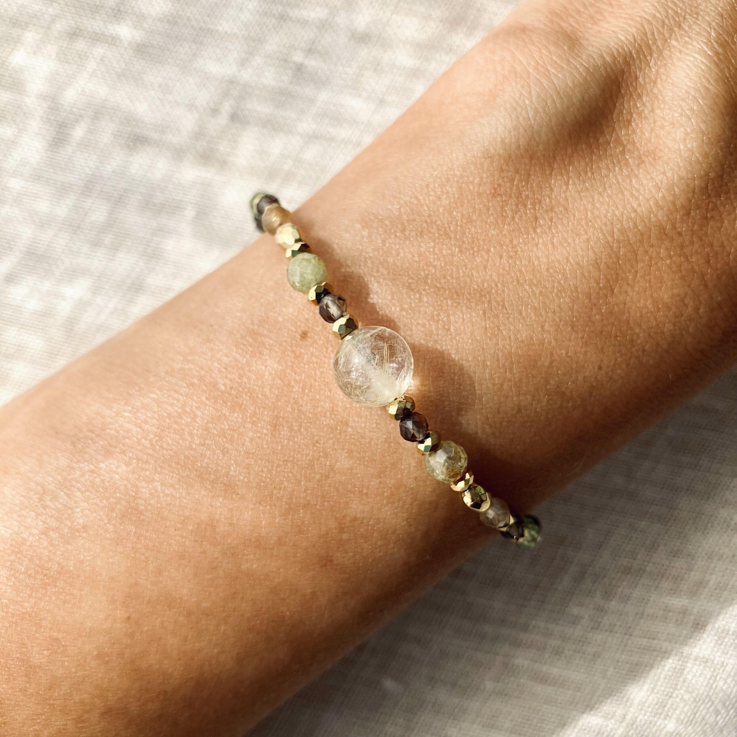 Bransoletka Vamsi z prehnitem i kwarcem dymnymDostępność: Na stanie