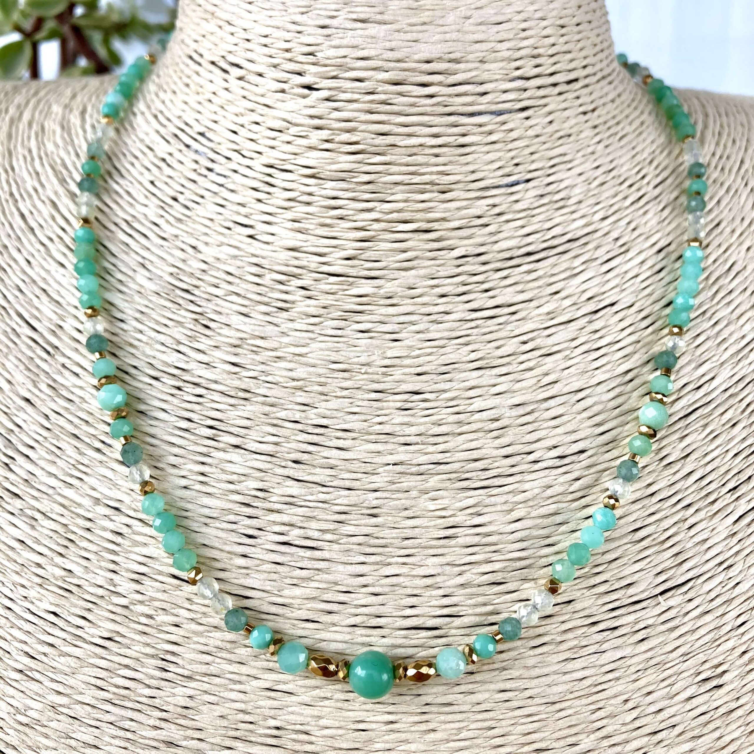 • fasetowane koraliki z kamienia pięknie odbijają światło, dając migoczący, świetlisty efekt,