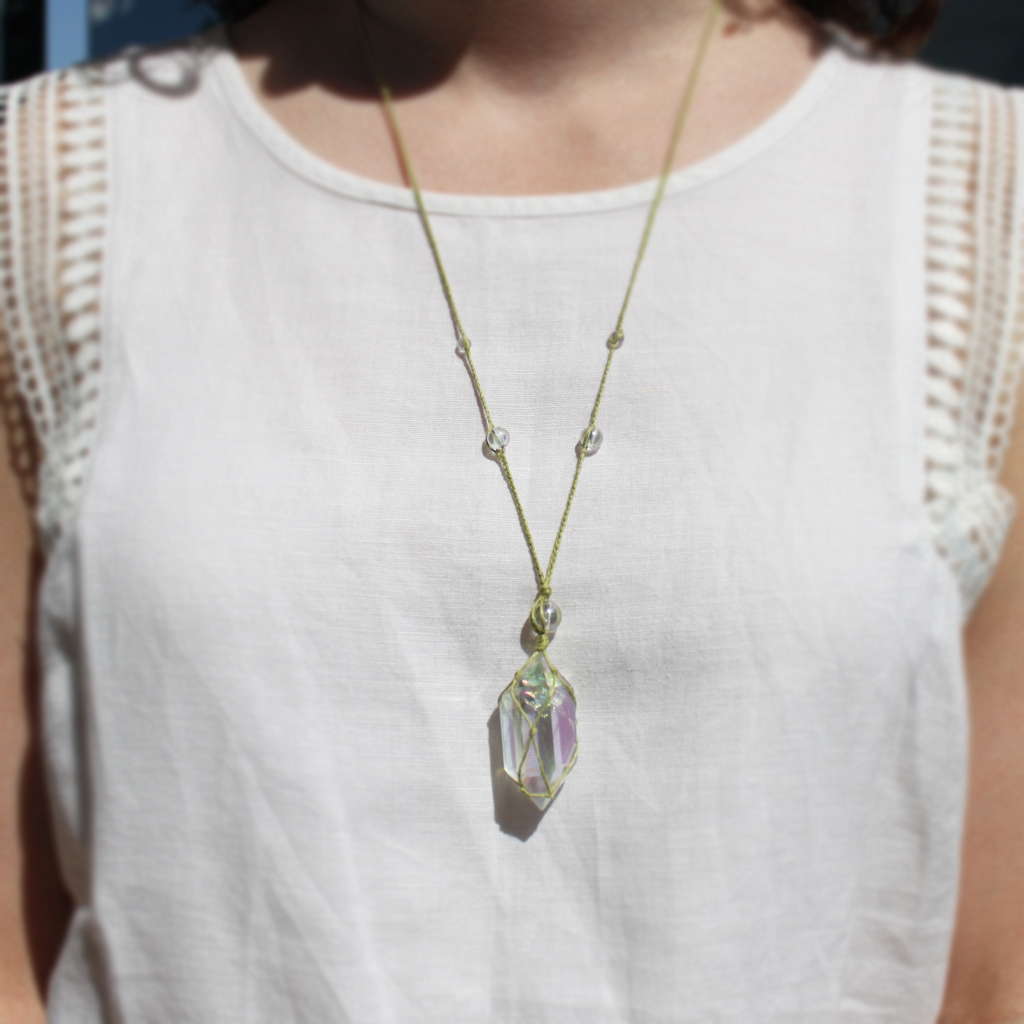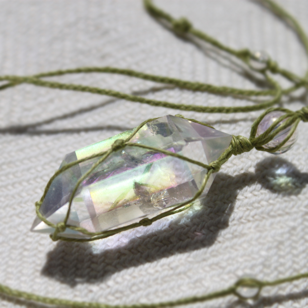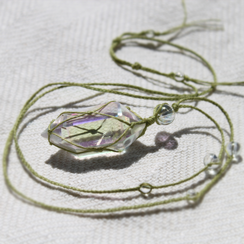 - obelisk i koraliki pokryte „anielską aurą” – warstwą platyny i srebra, stąd kolorowo połyskują zależnie od kąta padania światła,