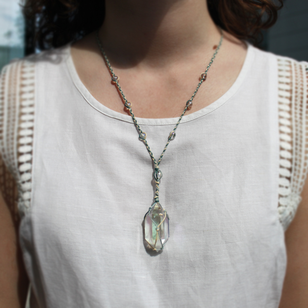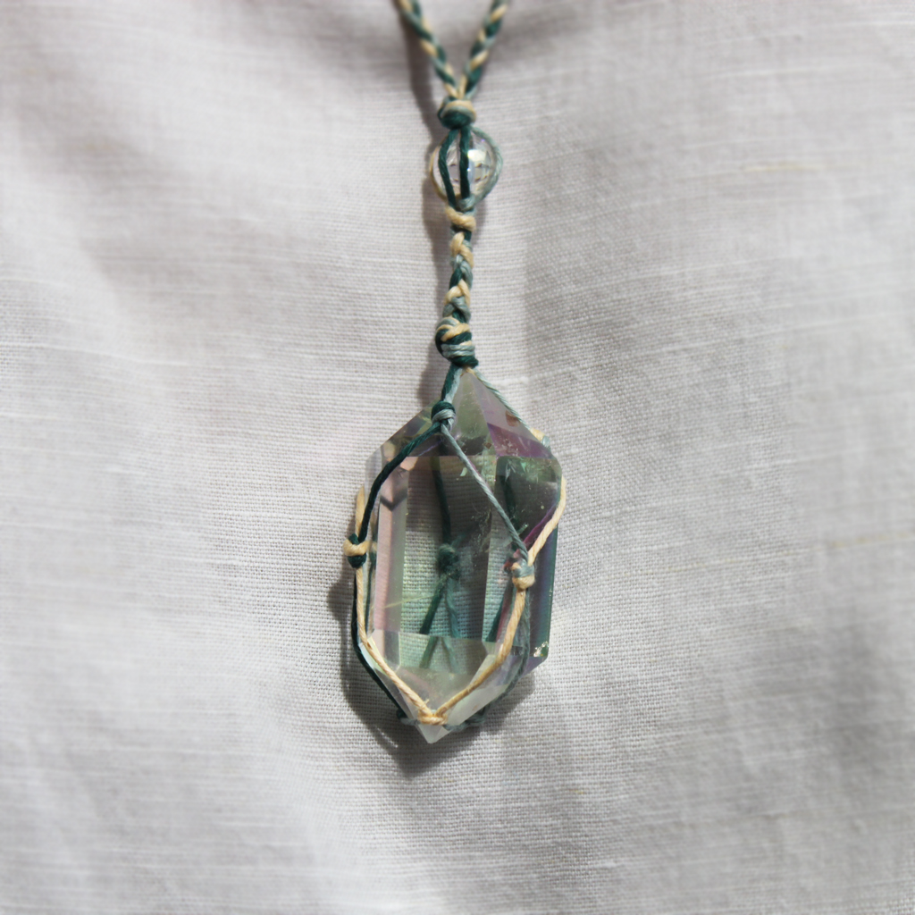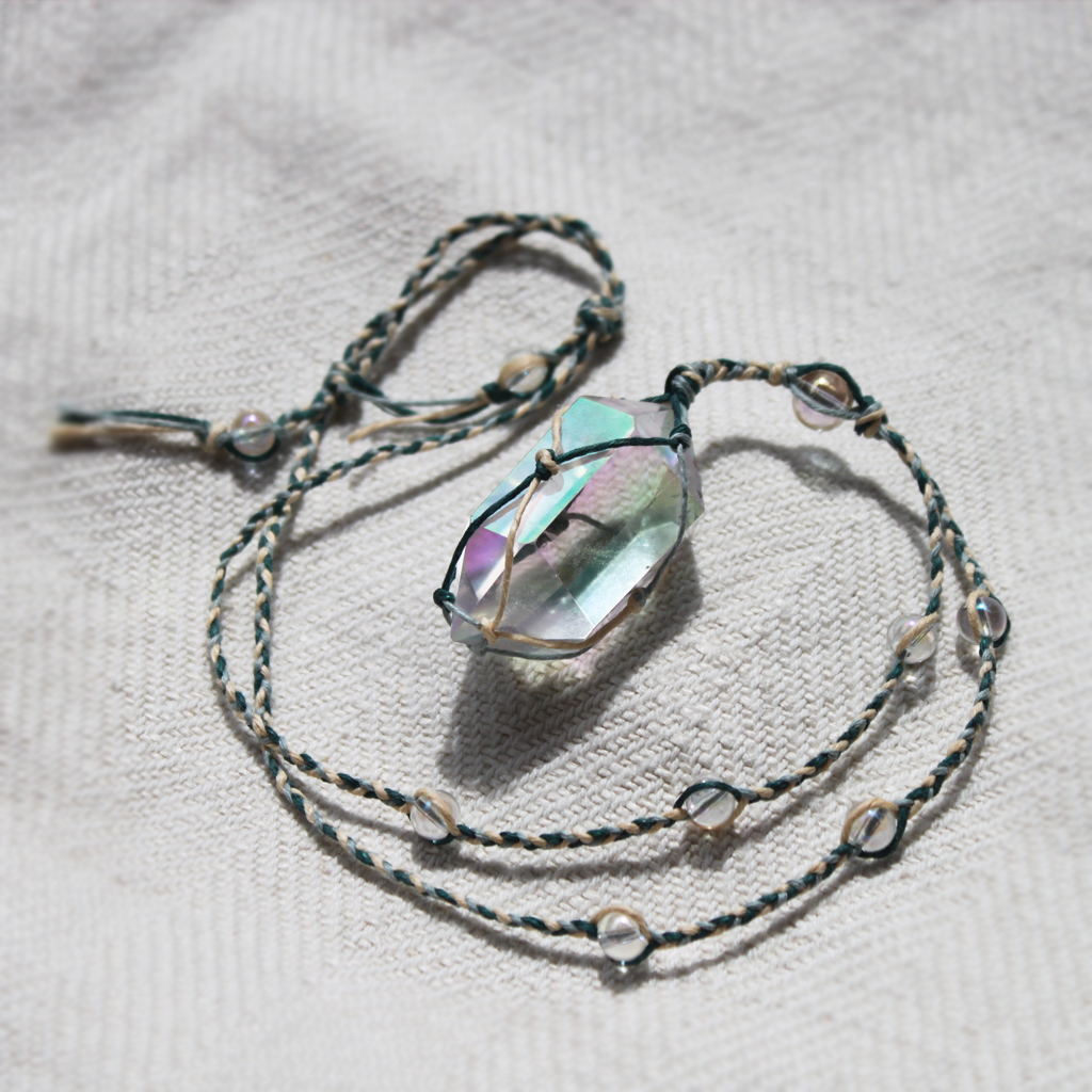 - obelisk i koraliki pokryte „anielską aurą” – warstwą platyny i srebra, stąd kolorowo połyskują zależnie od kąta padania światła,