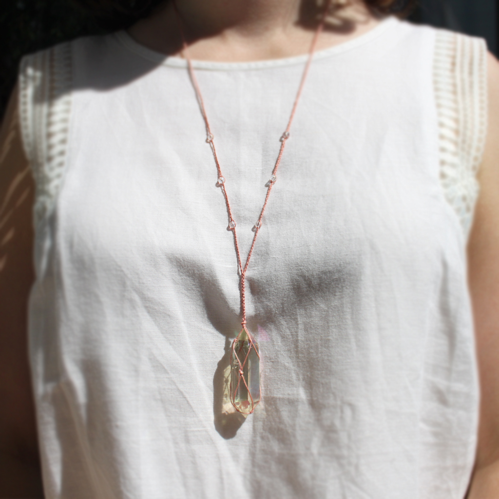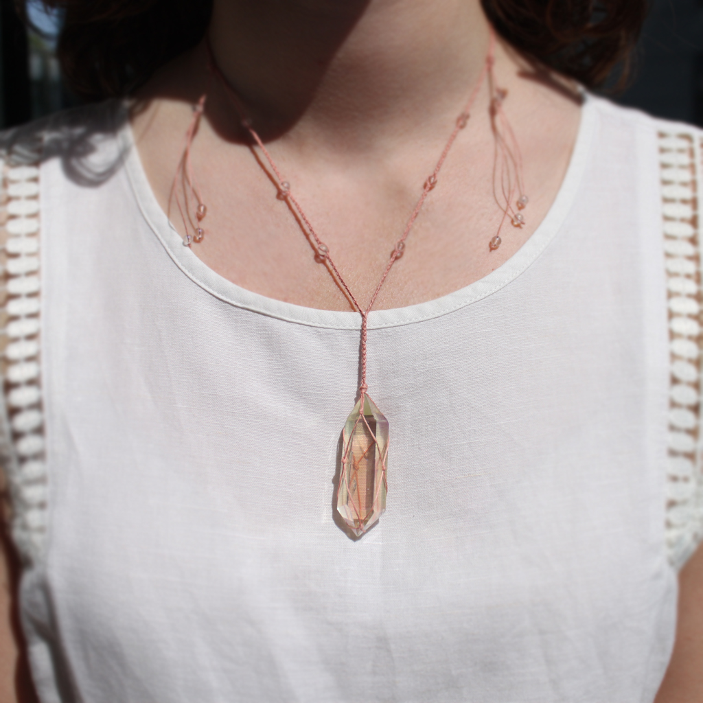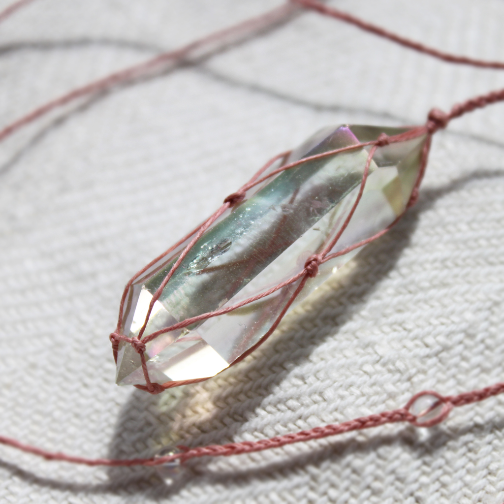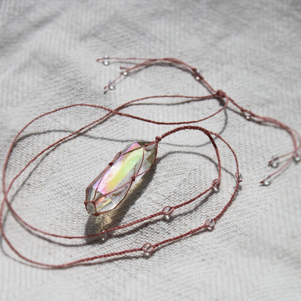 - obelisk i koraliki pokryte „anielską aurą” – warstwą platyny i srebra, stąd kolorowo połyskują zależnie od kąta padania światła,