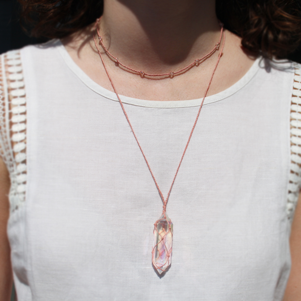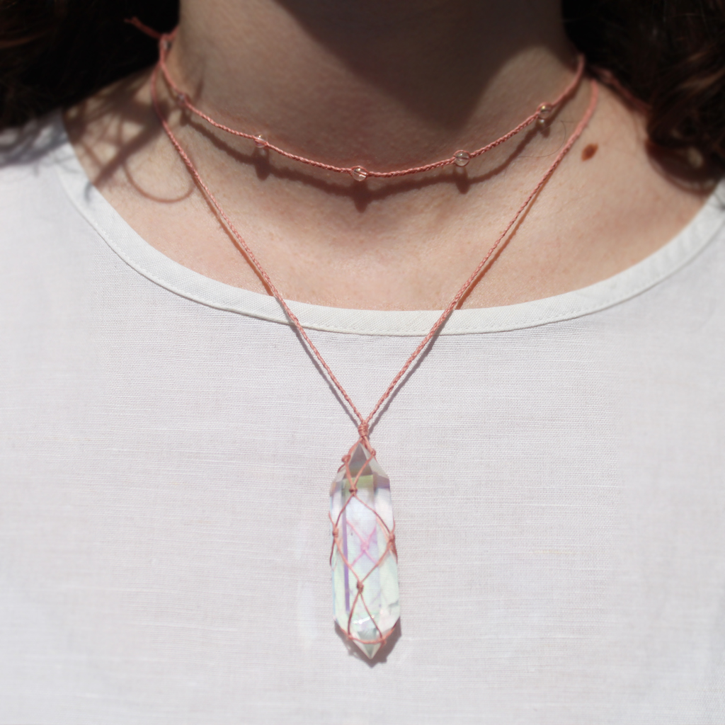 - obelisk i koraliki pokryte „anielską aurą” – warstwą platyny i srebra, stąd kolorowo połyskują zależnie od kąta padania światła,