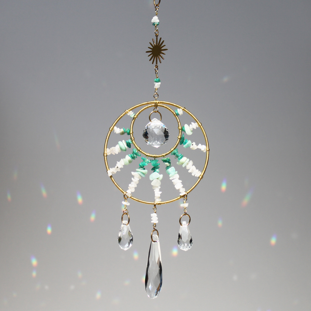 Słońce to życiodajna siła mająca bezpośredni wpływ na nasze samopoczucie i zdrowie. Łatwo zauważyć, że to właśnie w miejscach dobrze nasłonecznionych czujemy się lepiej, pozytywniej, mamy więcej energii i chęci do działania. Stąd warto zadbać o rozświetlenie naszej przestrzeni i zaproszenie do niej słonecznej energii. W tym celu może nam pomóc łapacz słońca z kryształem, który umieszczony w oknie w ekspozycji na światło słoneczne rozszczepi je na piękne, tęczowe punkty świetlne. Stając się nośnikiem iluminacji Słońca wypełni wnętrze subtelną promiennością, zapewniając magiczny pokaz świetlny, na którym będzie można nie raz zawiesić oko 😊
