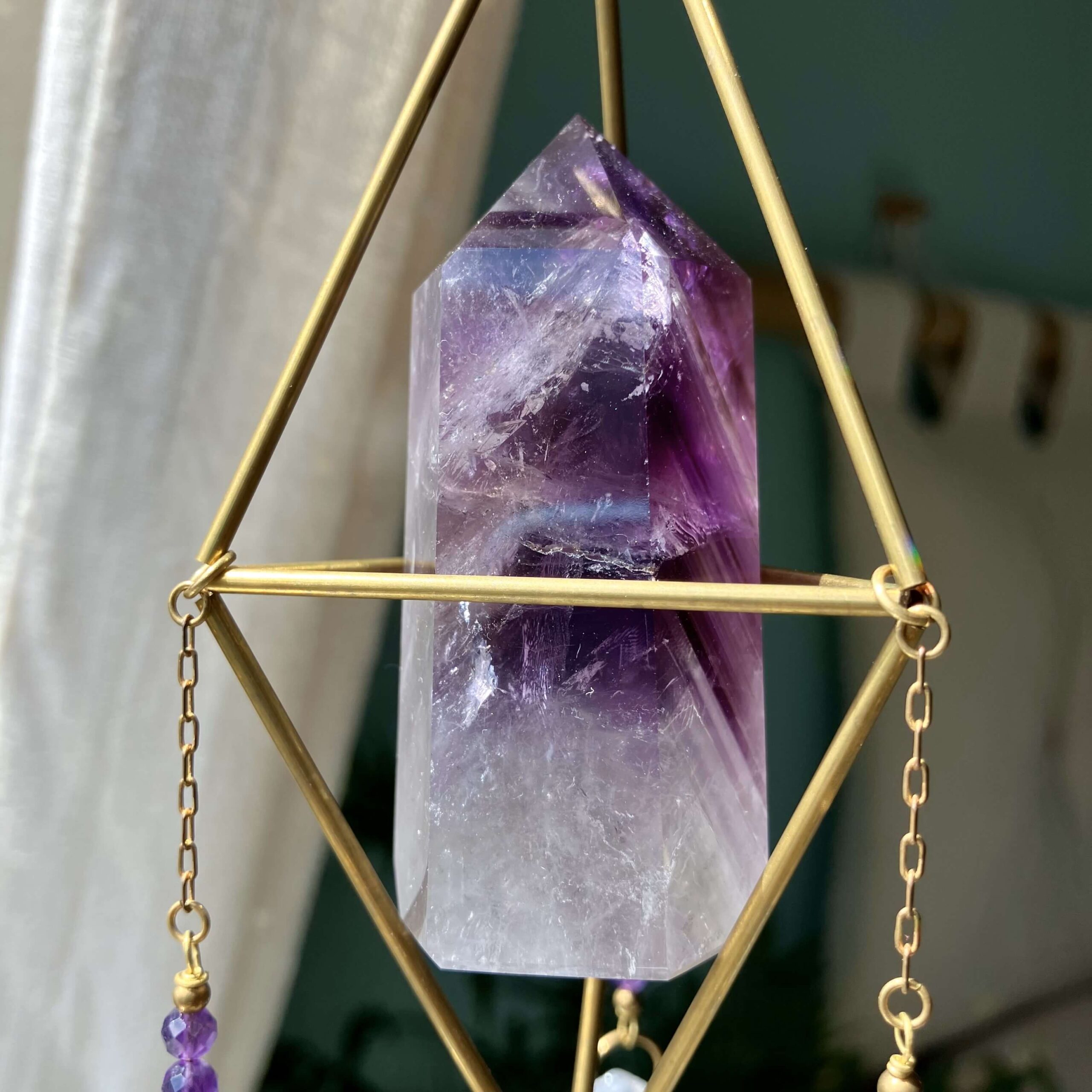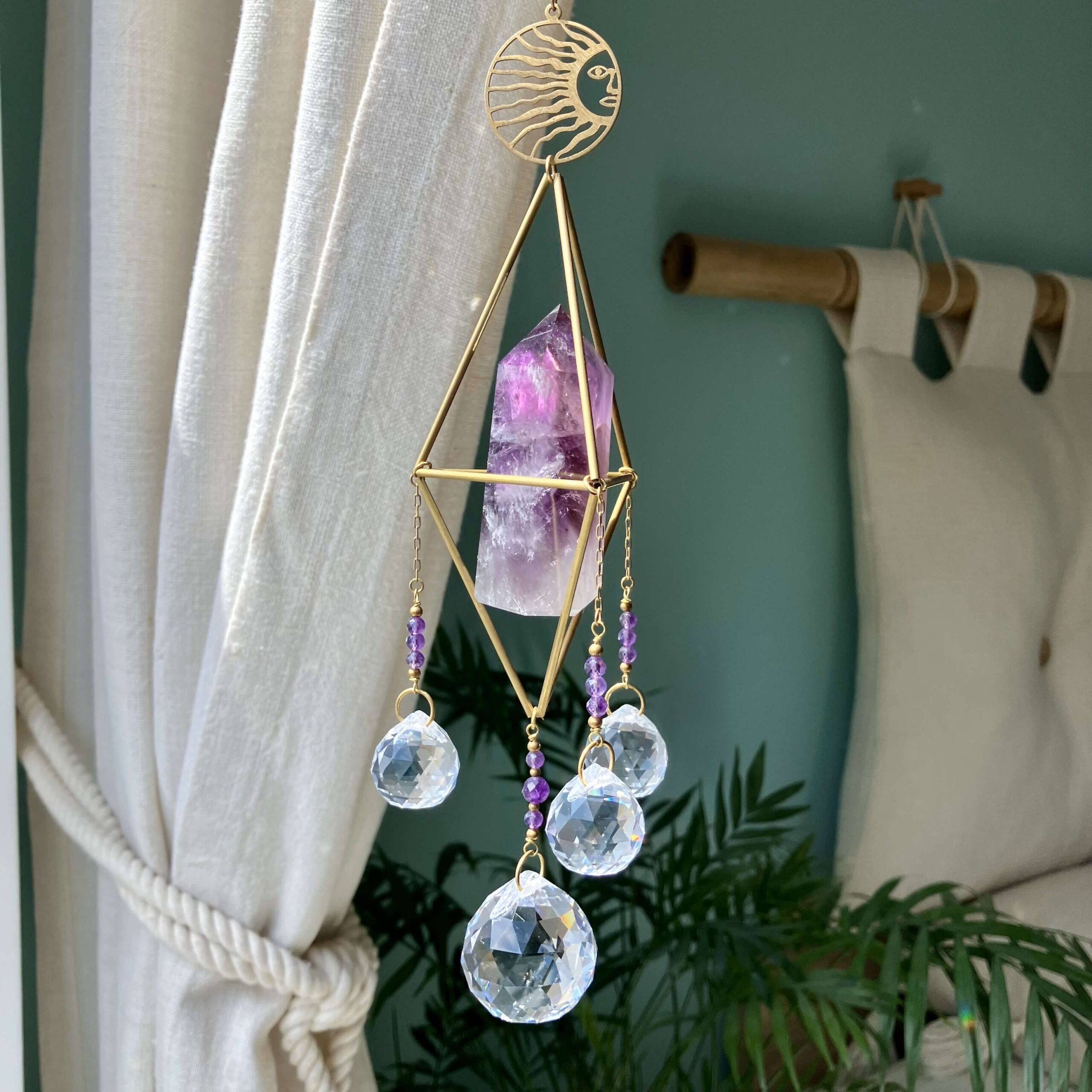 Słońce to życiodajna siła mająca bezpośredni wpływ na nasze samopoczucie i zdrowie. Łatwo zauważyć, że to właśnie w miejscach dobrze nasłonecznionych czujemy się lepiej, pozytywniej, mamy więcej energii i chęci do działania. Stąd warto zadbać o rozświetlenie naszej przestrzeni i zaproszenie do niej słonecznej energii. W tym celu może nam pomóc łapacz słońca z kryształem, który umieszczony w oknie w ekspozycji na światło słoneczne rozszczepi je na piękne, tęczowe punkty świetlne. Stając się nośnikiem iluminacji Słońca wypełni wnętrze subtelną promiennością, zapewniając magiczny pokaz świetlny, na którym będzie można nie raz zawiesić oko 😊